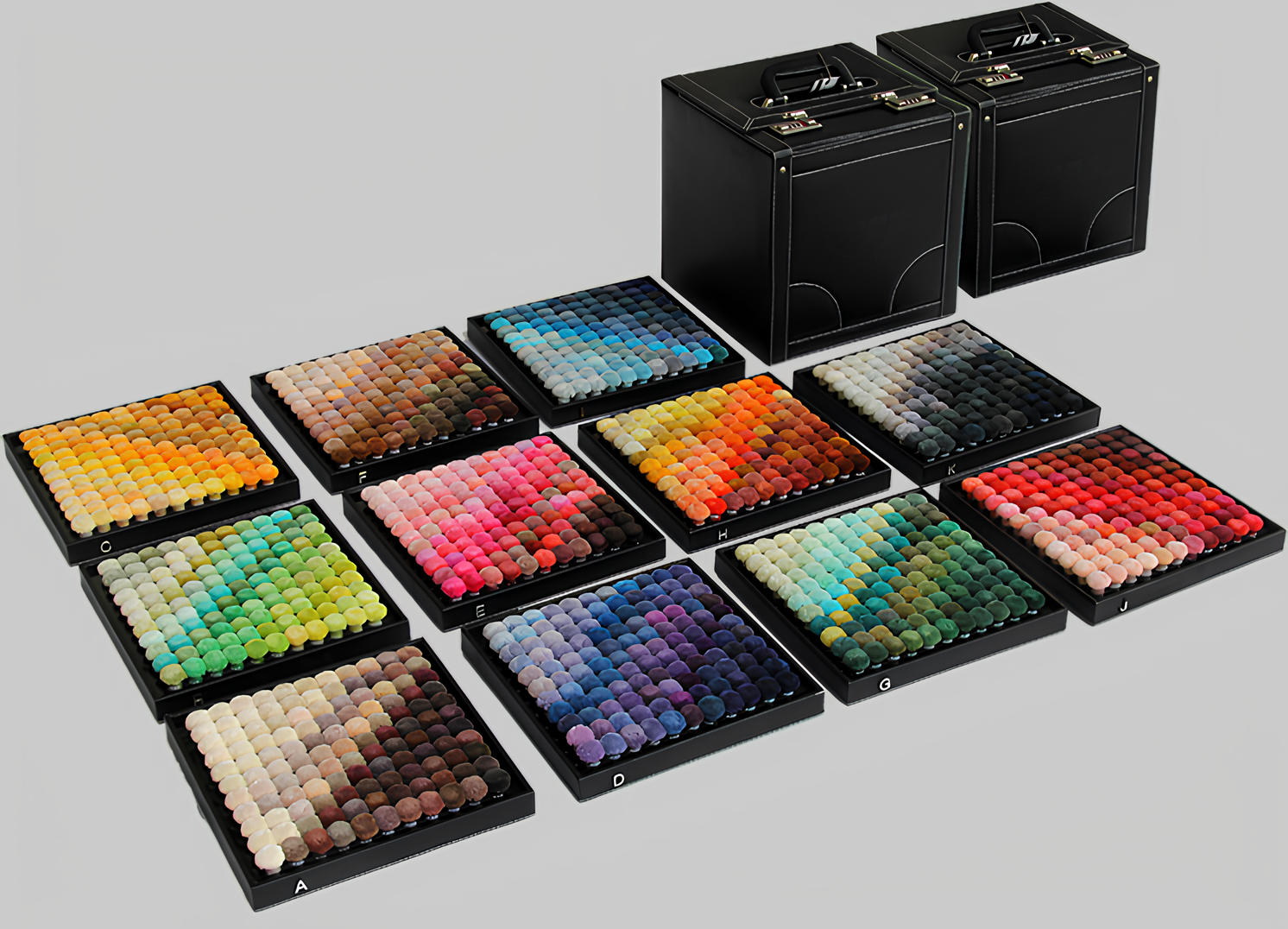 These are arranged within trays in factored groupings to aid systematic selection.